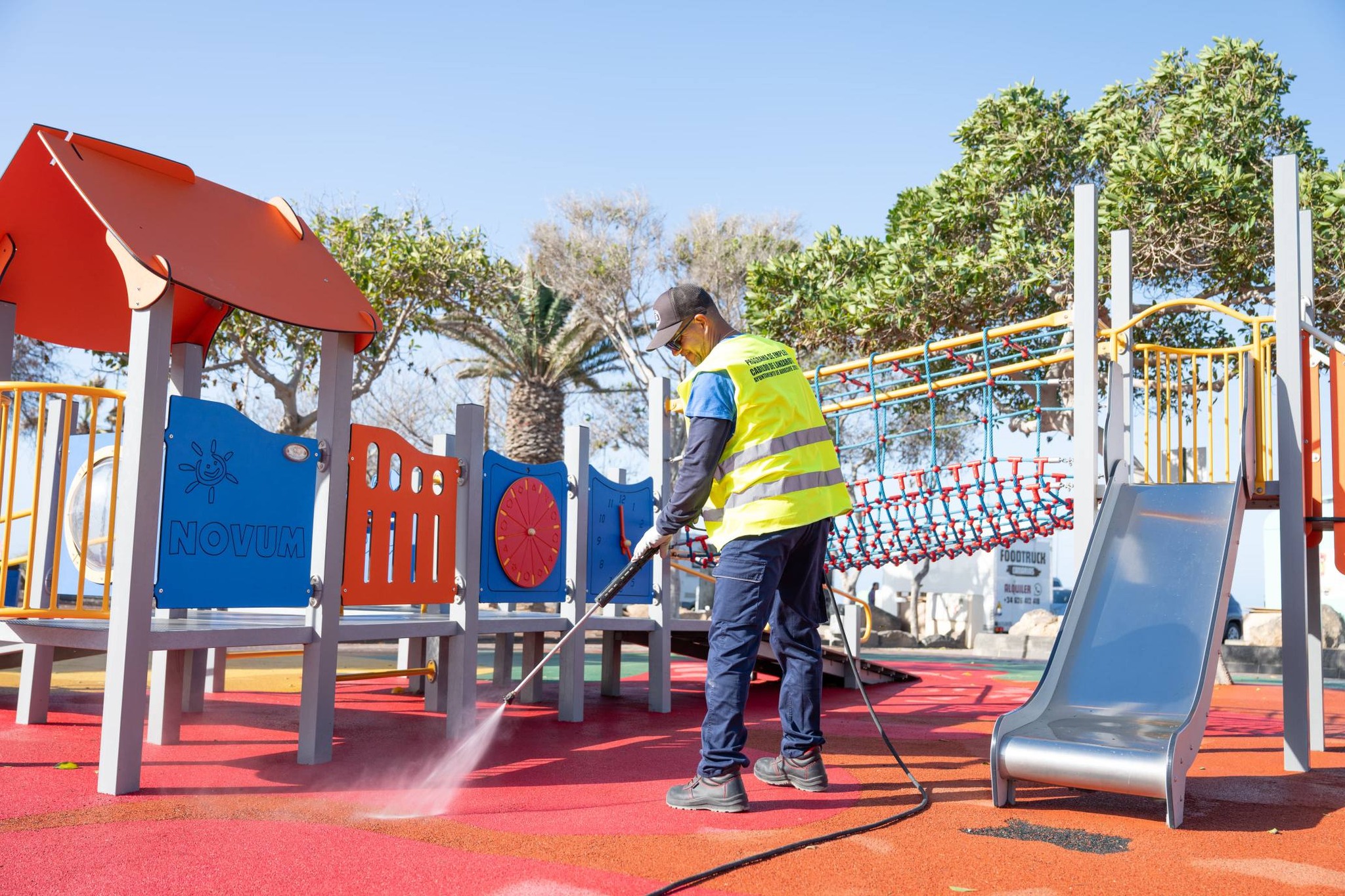 El Ayuntamiento de Arrecife, a través de la Concejalía de Parques Infantiles, dirigida por Roberto Herbón, está redoblando la higiene y limpieza de todos los parques infantiles y zonas de ocio en la ciudad.