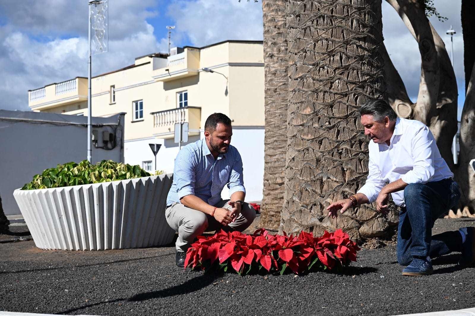 Con esta acción, Arrecife no solo celebra la Navidad, sino que también refuerza su apuesta por el cuidado y embellecimiento de sus espacios verdes, enfatiza el edil Roberto Herbón, que ha estado junto al alcalde supervisando estas plantaciones.