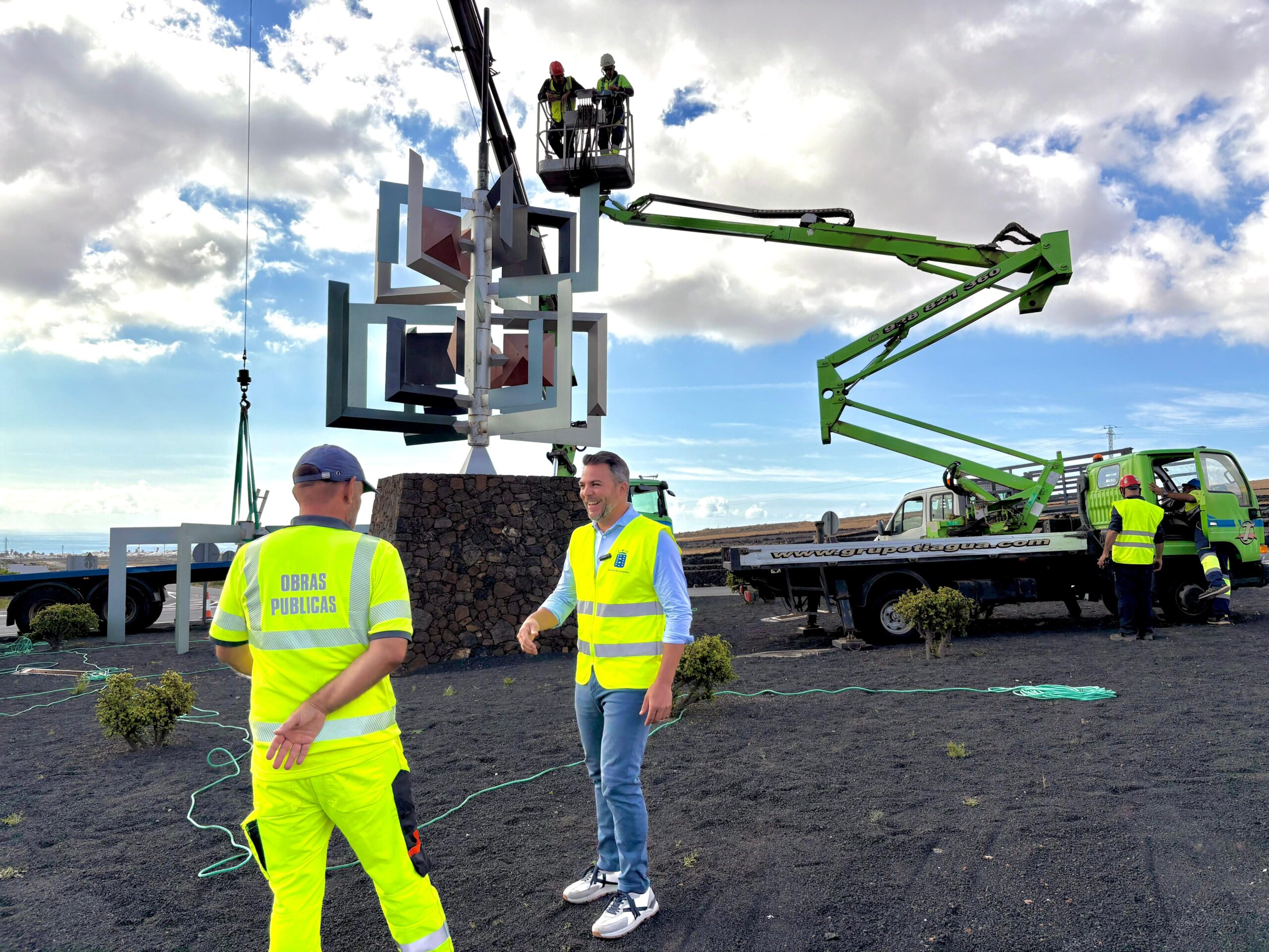 El Cabildo de Lanzarote, a través del área de Obras Públicas, ha iniciado los trabajos de rehabilitación del emblemático Juguete del Viento de Montaña Blanca, una de las esculturas móviles diseñadas por el artista lanzaroteño César Manrique y que forma parte del patrimonio artístico y paisajístico de la isla.